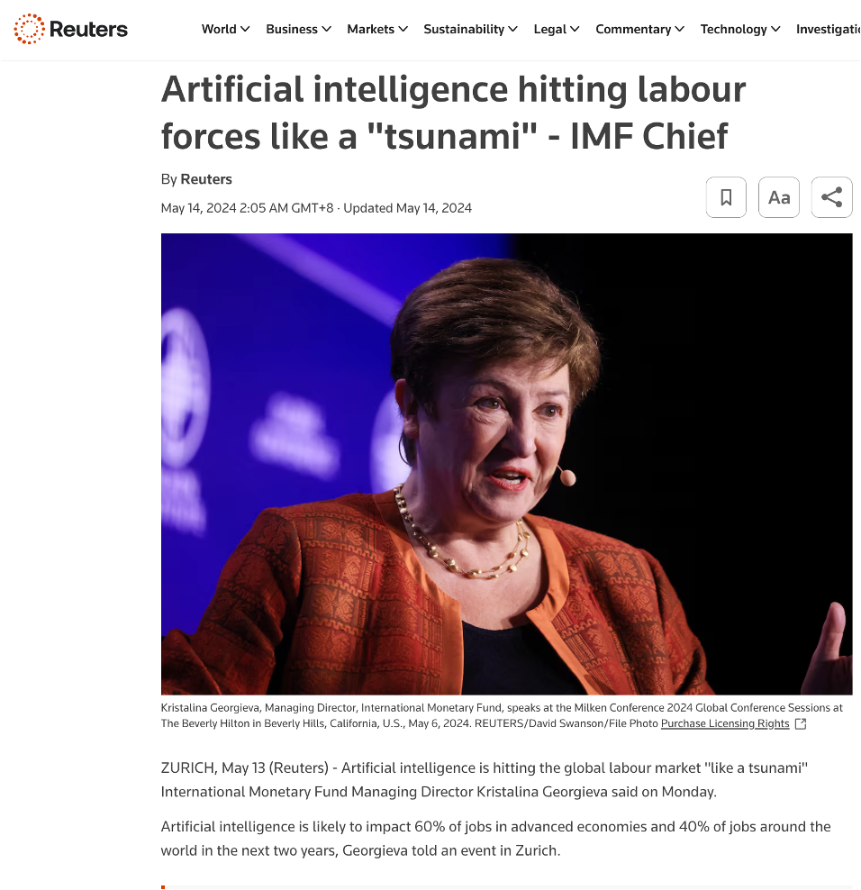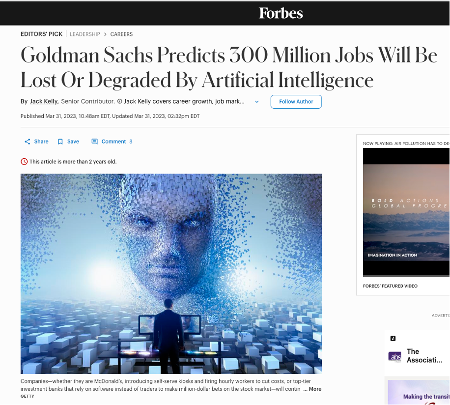 Goldman Sachs predicts 300 million jobs will be lost or degraded.